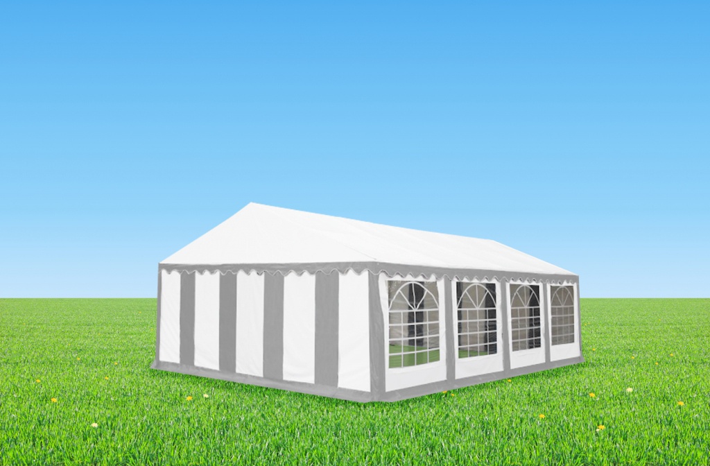 Materiál: - opláštenie stanu je vyrobené z pevného a odolného materiálu z PVC 500g/m2 - odolný proti UV žiareniu a 100 % vodotesný - v ponuke aj ohňuvzdorná plachta - otvory zaistené zipsom - bočné steny máme v ponuke s oknami alebo bez okien - konštrukcia je z pozinkovaných oceľových tyčí - priemer cca 38 mm - hrúbka steny cca 1,1 mm - stabilná konštrukcia založená na jednoduchých skrutkových spojov - ukotvenie klínmi do zeme